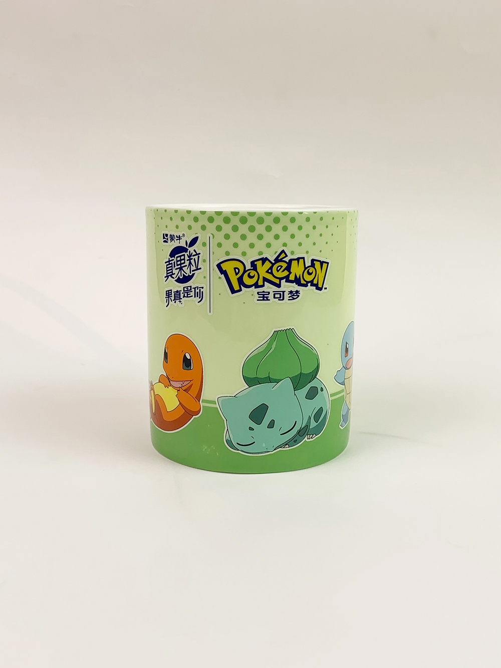 真果粒是蒙牛集團推出的全球首款含有可嚼果粒的新一代牛奶飲品。2006年就已經(jīng)首創(chuàng)成功并推向市場。作為中國乳業(yè)的龍頭,蒙牛始終堅持自主創(chuàng)新的原則,積極探索著更適合中國人身體膳食結(jié)構(gòu)的營養(yǎng)飲品,面對全球30%以上人口維生素等營養(yǎng)缺乏及亞健康狀態(tài)的困擾,蒙牛組織各方專家綜合探討,得出最行之有效的方案即是通過合理的膳食來改善營養(yǎng)狀況,尤其是多吃富含維生素的水果、多喝牛奶,更進一步提出了“真實果粒+純鮮牛奶”的大膽構(gòu)想,真實就是真果粒。蒙牛集團找到我們,想要定制一款關(guān)于真果粒與寶可夢聯(lián)動的杯子,經(jīng)過不斷地設(shè)計調(diào)整,最終選定,下面是產(chǎn)品的實拍圖: