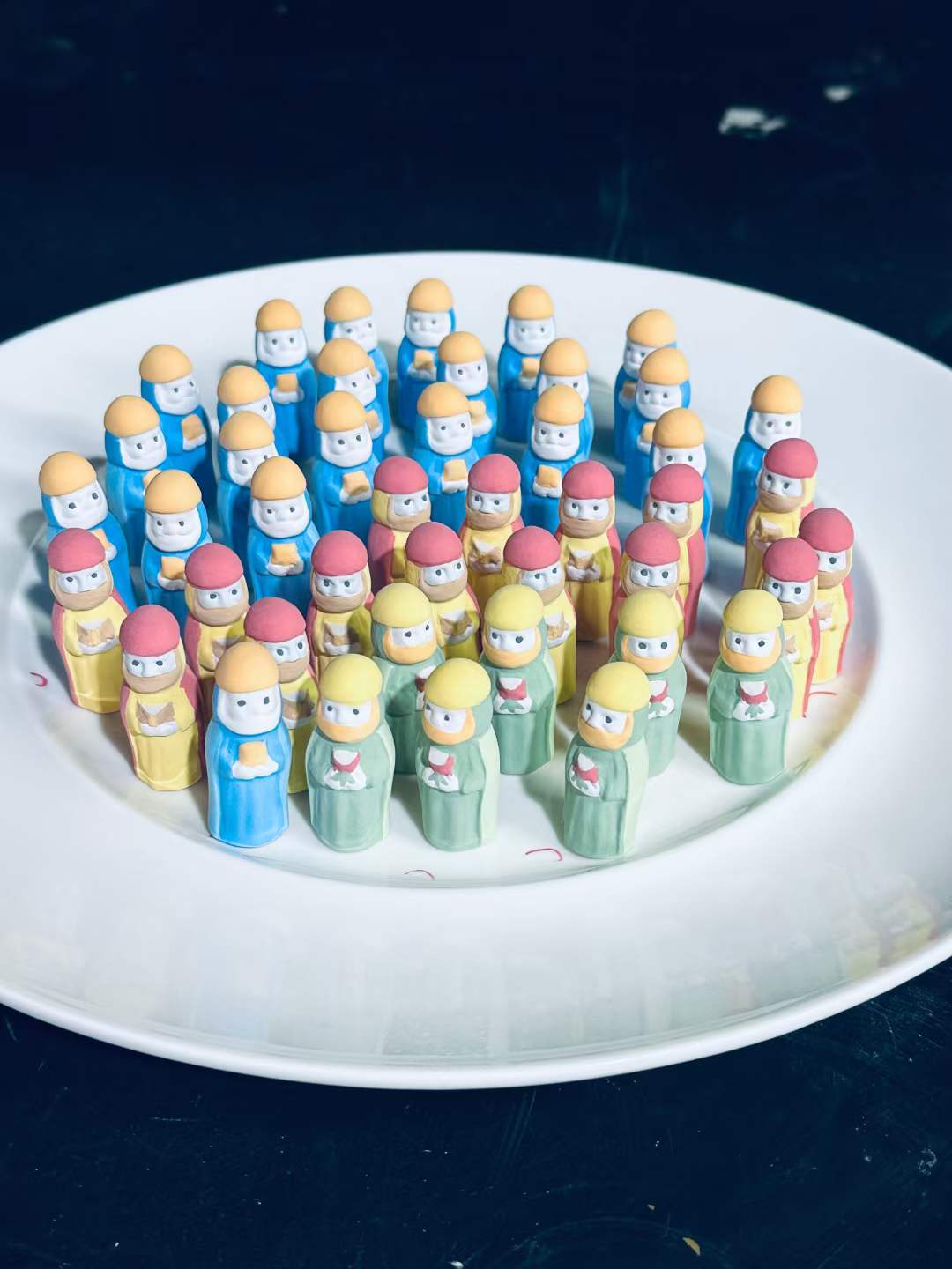 客戶找到我們,想要定制一批餐桌擺件。產品分為兩個形象,各三種顏色,尺寸非常小,而且顏色很多,所以技術難度很高。好在我們定制經驗豐富,最終效果也是讓客戶非常滿意。下面是我們的生產圖片: