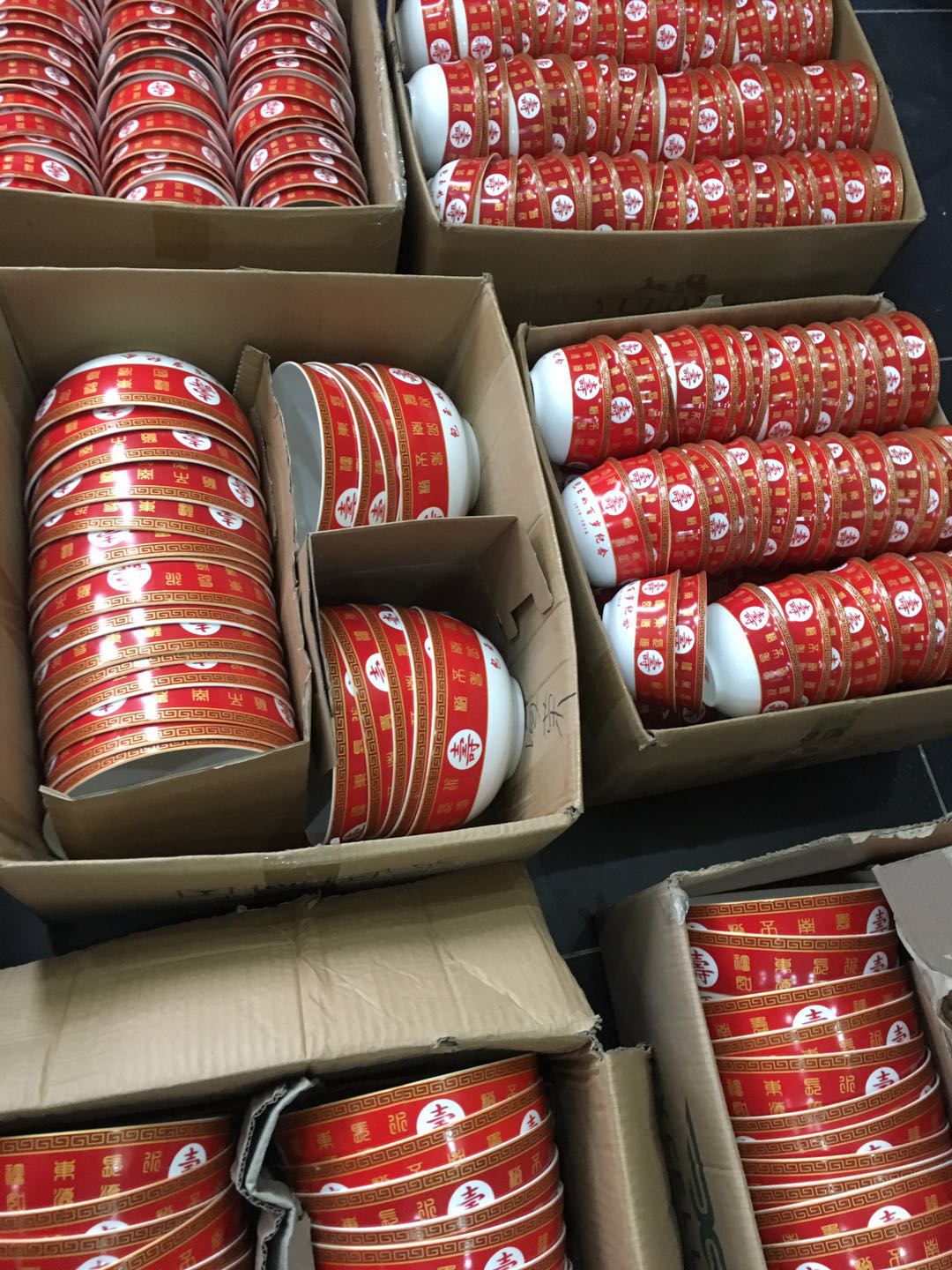 這次陶瓷壽碗定制的客戶要1000套,她想要給自己媽媽定制一款百歲壽碗。兩碗兩勺規(guī)格,陶瓷碗的尺寸有兩種一個是5寸金鐘碗,另一個8寸奧硫碗,客戶對時間要求比較嚴(yán)格,因為是其長輩壽辰之時用。以下是產(chǎn)品: