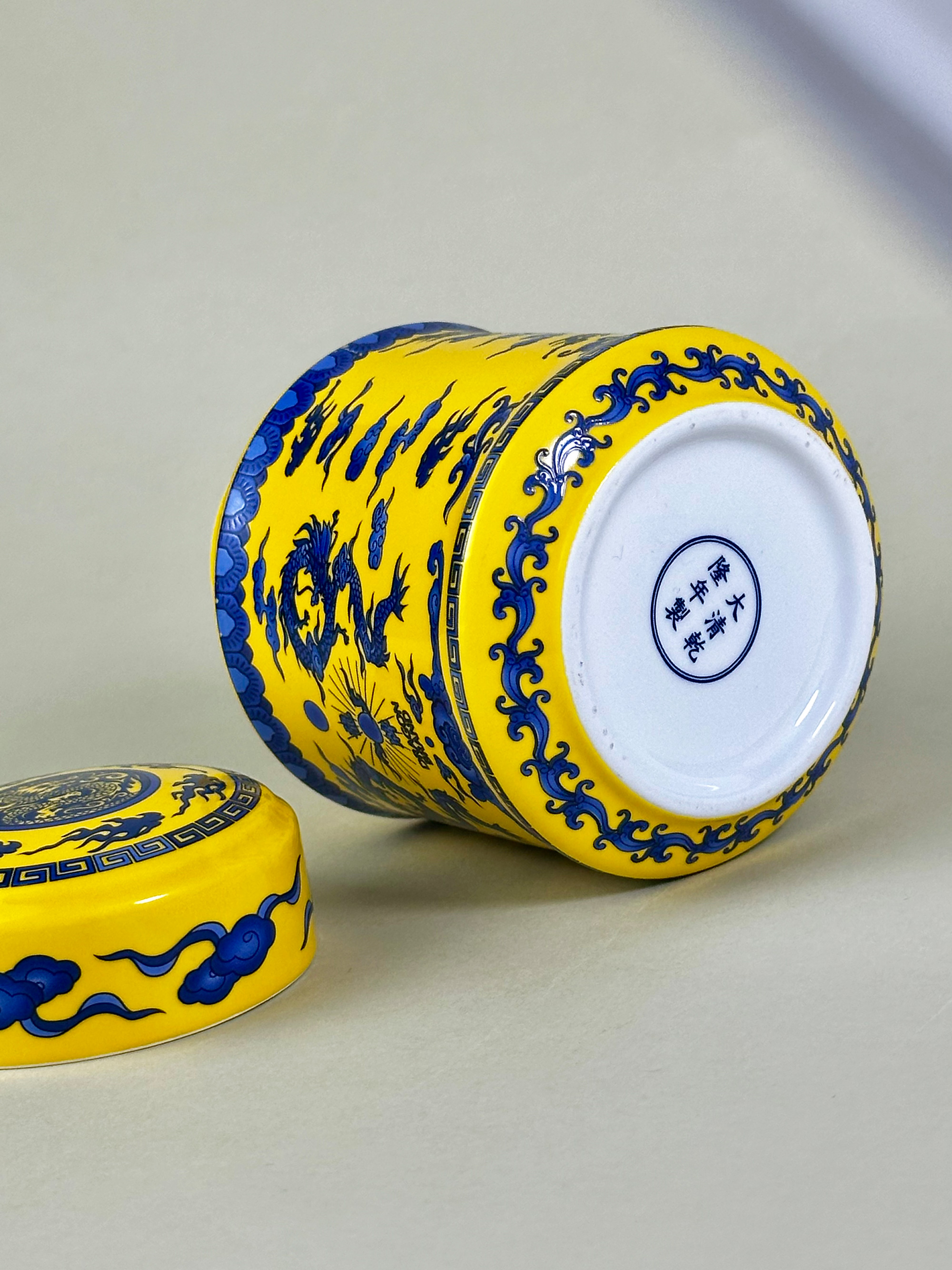 客戶定制 帝王黃青花龍紋陶瓷茶葉罐