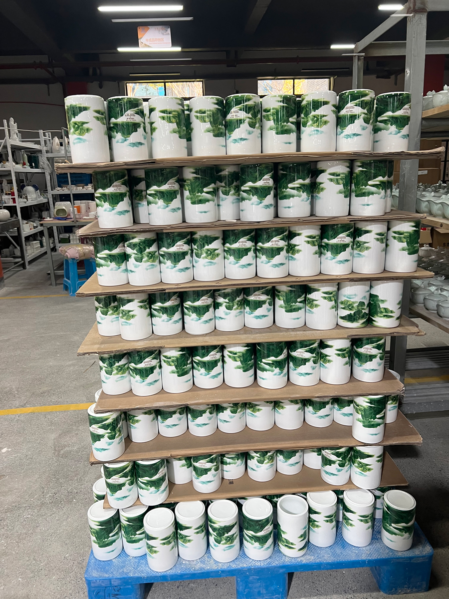 客戶找到我們,想要定制一批千里江山圖的罐子,將產品制作出來后,客戶很滿意!下面是產品的大貨圖: