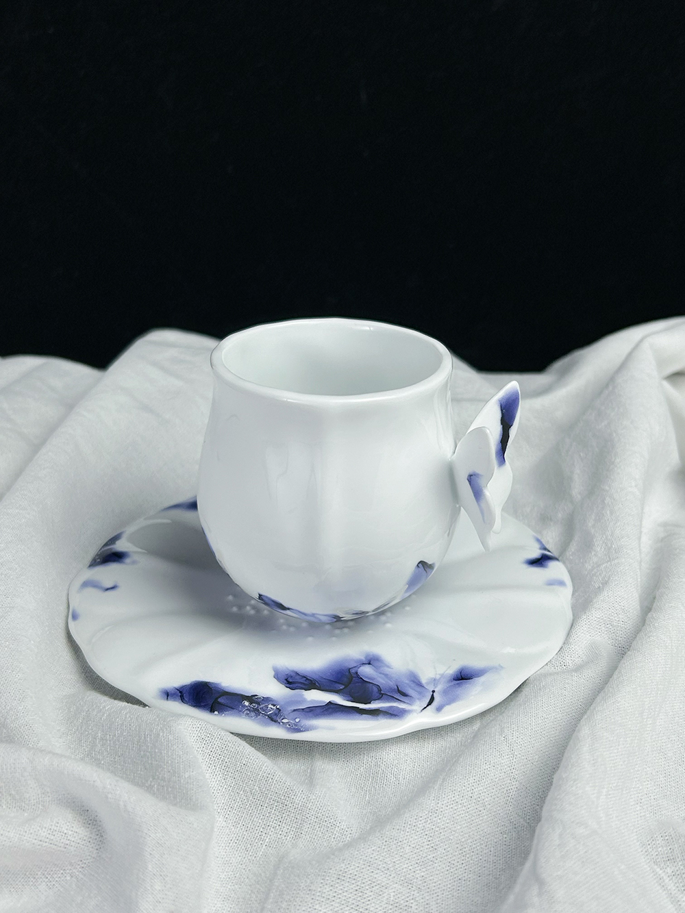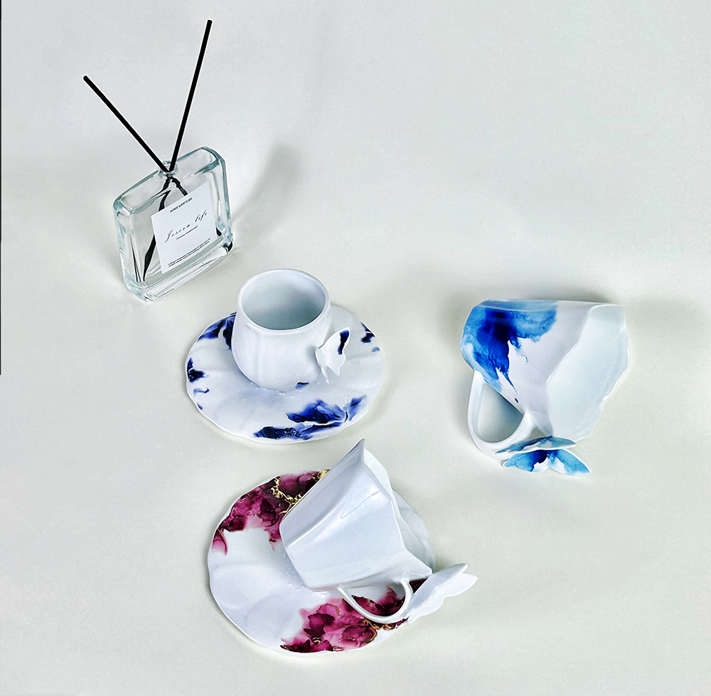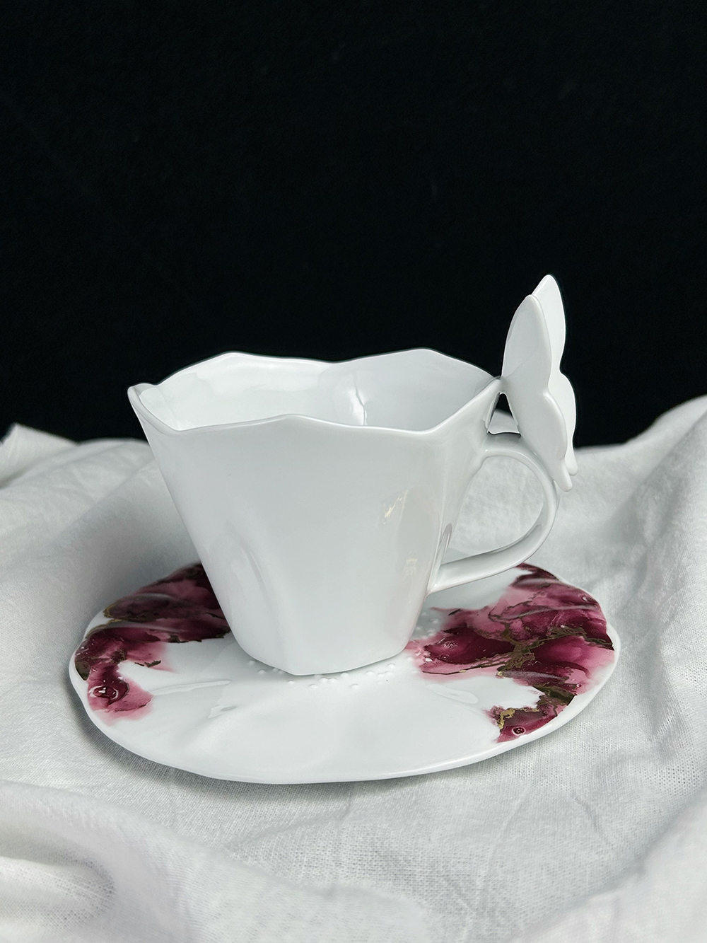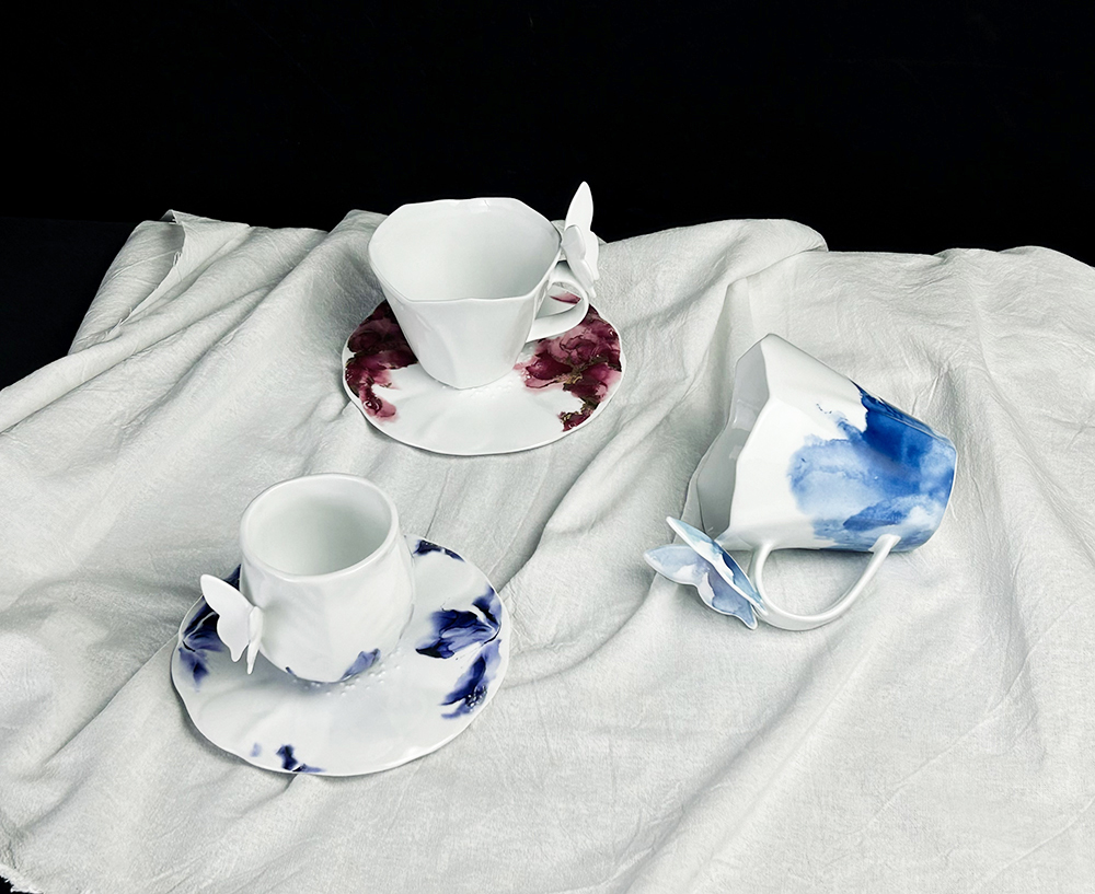 客戶找到我們,想要定制一批關于蝴蝶的馬克杯,經過不斷設計調整,最終選定,下面是產品的實拍圖: